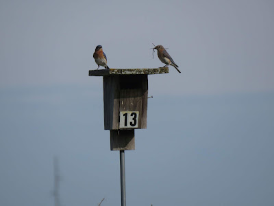 The pair from Box 13 is giving it one more try, after losing two clutches. With the wren sticks removed, they made a normal grass nest.